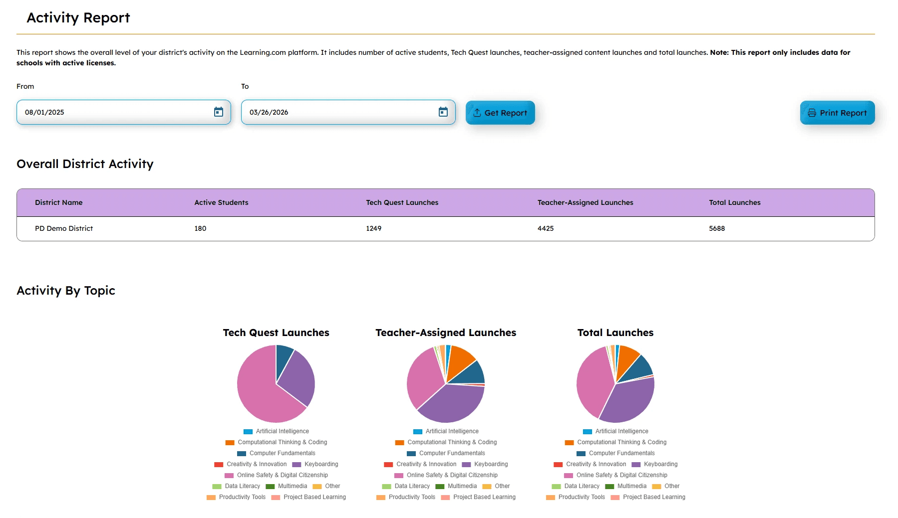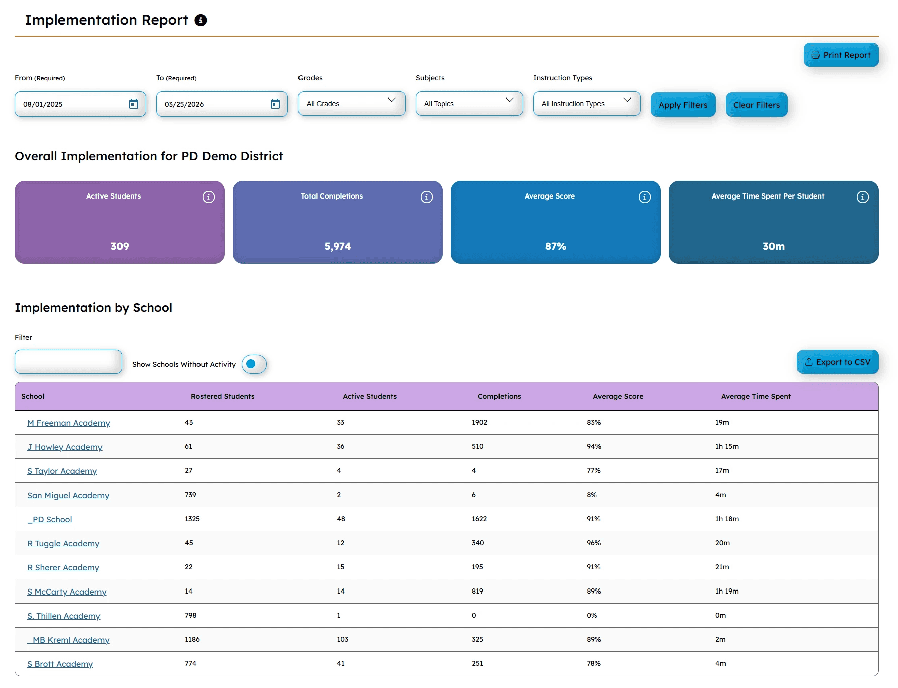 Monitor student progress and usage across schools to understand how instruction is being implemented - and ensure students are building the skills they need.